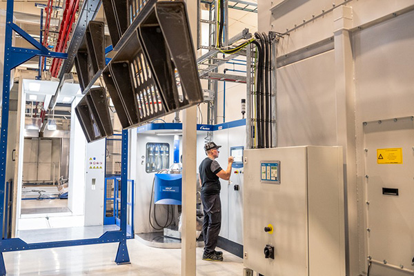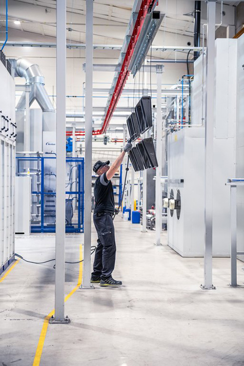 ”Vanha maalaamomme oli käsiohjattava pieni maalausrata, jossa oli valmiiksi raepuhallettuja kappaleita, jotka ripustettiin linjalle, ja operaattori levitti jauheet manuaalisesti maalauskaapissa, josta kappaleet siirrettiin polttouuniin. Maalaamon laatu ei enää täyttänyt nykyisten ja tulevien asiakkaiden vaatimuksia. Siksi konsernissa tehtyjä tuotteita jouduttiin maalauttamaan muualla, mikä ei ollut tehokasta ja taloudellista”, Lappalainen kuvailee lähtötilannetta.