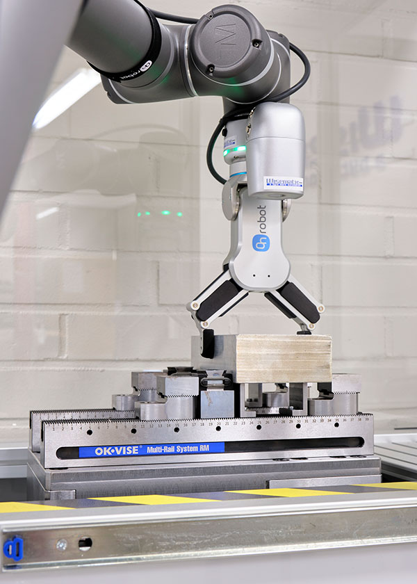 kiinnitys. OK-VISE Oy:n automaatioratkaisua voidaan käyttää sekä robotisoidun