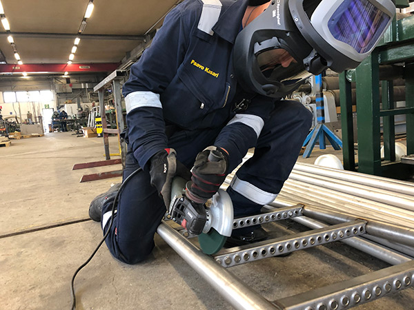 Lappeenrantalaisella Rautarakenne Leivo Ky:llä haasteena oli kanttausjälkien poistaminen teräskouruista.